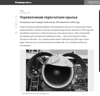 Собеседники “Ъ” в отрасли неоднократно отмечали, что этот прогноз оказался избыточно пессимистичным, поскольку составлялся в первые месяцы действия санкций против гражданской авиации, пока планы по параллельному импорту еще не были сформированы. А вот прогноз по сохранности отечественного парка и в 2022 году казался источникам “Ъ” излишне оптимистичным. В авиапроме ожидают корректировки КПГА к 2026 году. Источники “Ъ” оценивают реалистичные поставки новых отечественных самолетов в 50–200 ВС всех типов.