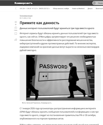 В Минцифры уверяют, что увеличение срока хранения сообщений пользователей позволит «улучшить безопасность и защиту пользователей в интернете»: «Увеличение этого срока позволит создать более эффективную систему для расследования и пресечения преступлений, таких как мошенничество, киберпреступность и другие противоправные действия». В пресс-службе министерства добавляют, что для обычных граждан ничего не изменится. В Роскомнадзоре не ответили на запрос “Ъ”.