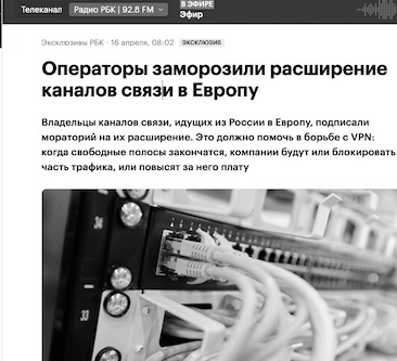 Около 20 компаний — владельцев зарубежных каналов связи подписали мораторий на их расширение. Об этом РБК рассказали четыре источника на телекоммуникационном рынке. Речь идет об аренде или вводе в эксплуатацию новых каналов связи, по которым передается весь зарубежный трафик.