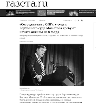 Кроме того, Момотов и Марченко уклонились от уплаты налогов на сумму в размере более чем в 500 млн руб. и не погашают задолженность. Генпрокуратура также считает, что Момотов получил из бюджета Краснодара более 100 млн рублей по фиктивному спору. Ведомство требует запретить судье выезд за рубеж, а также наложить арест на все недвижимое и движимое имущество, принадлежащее ответчикам и аффилированным с ними лицами, и их денежные средства.