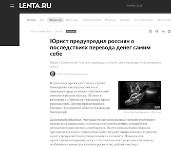 В последнее время участились случаи блокировки счетов россиян из-за переводов средств между собственными счетами в разных банках. Об этом в разговоре с «Лентой.ру» рассказал юрист, руководитель Центра правопорядка в Москве и Московской области Александр Хаминский.