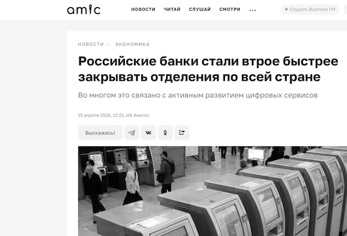 «Текущая ситуация — продолжение долгосрочной трансформации банковского рынка. Эксперт отметил, что сокращение отделений во многом связано с активным развитием цифровых сервисов: сегодня значительную часть банковских услуг можно получить дистанционно — быстрее и с меньшими затратами», — пояснил изданию Максим Гмыря, основатель агентства по управлению рисками "Секвойя Групп".