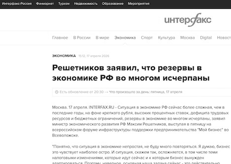 "Сейчас фиксируем, что эти резервы во многом исчерпаны, ситуация действительно такая и макроэкономическая значительно более сложная", - предупредил министр.