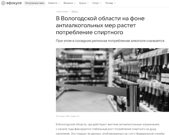 26 сентября губернатор заявил со ссылкой на данные регионального Минздрава, что в Вологодской области на 46% снизилась смертность от заболеваний, связанных с употреблением алкоголя.