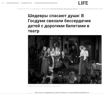 Шедевры спасают души: В Госдуме связали бессердечие детей с дорогими билетами в театр
